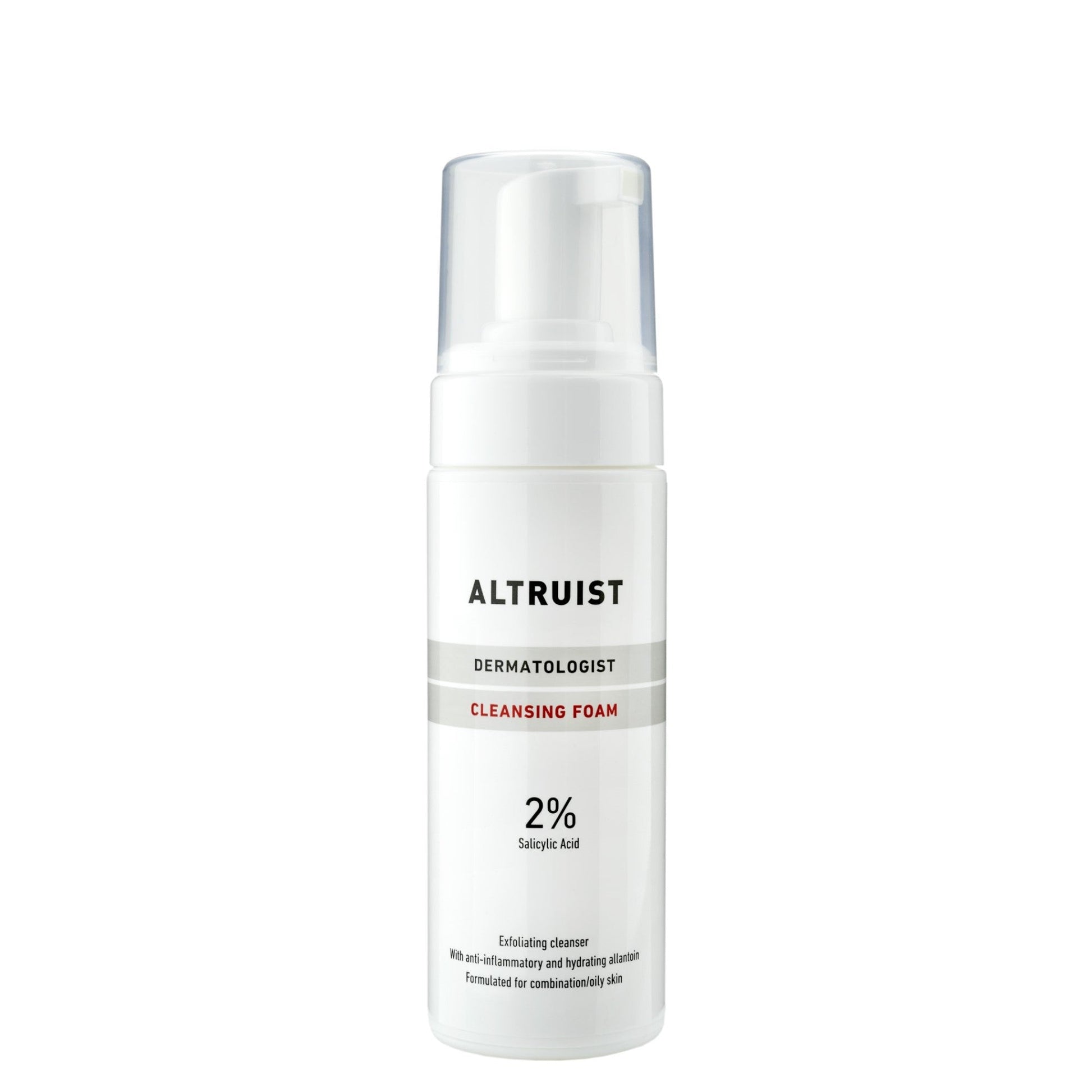The Atruist dermatologist cleansing foam has 2% salicylic acid.  Contains anti-inflammatory and hydrating allantoin.  Formulated for combination/oily skin by consultant dermatologist Dr. Andrew Birnie.  Ideal for acne prone skin as the salicylic acid clears pores of dirt and reduces sebum production.  It gently cleans blemish prone skin.  Removes dry and dead skin cells, providing youthful-looking skin.  Leaves skin feeling clean and fresh.