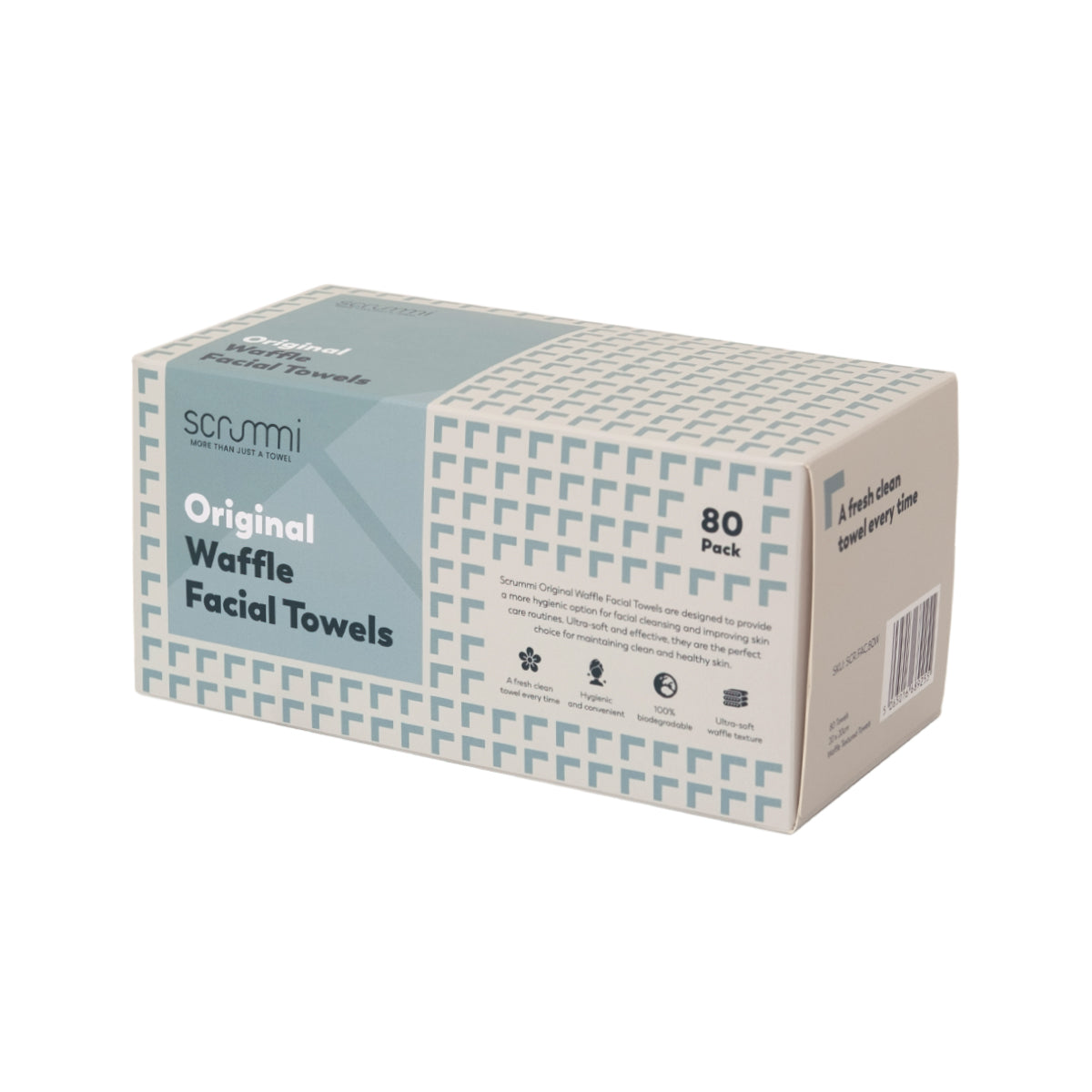 Presented in sleek, innovative packaging that fits seamlessly into any space, Scrummi Facial Towels combine practicality with premium performance. Whether you're cleansing, removing a mask, or removing makeup, elevate your skincare with a towel that’s as clean as your routine deserves.